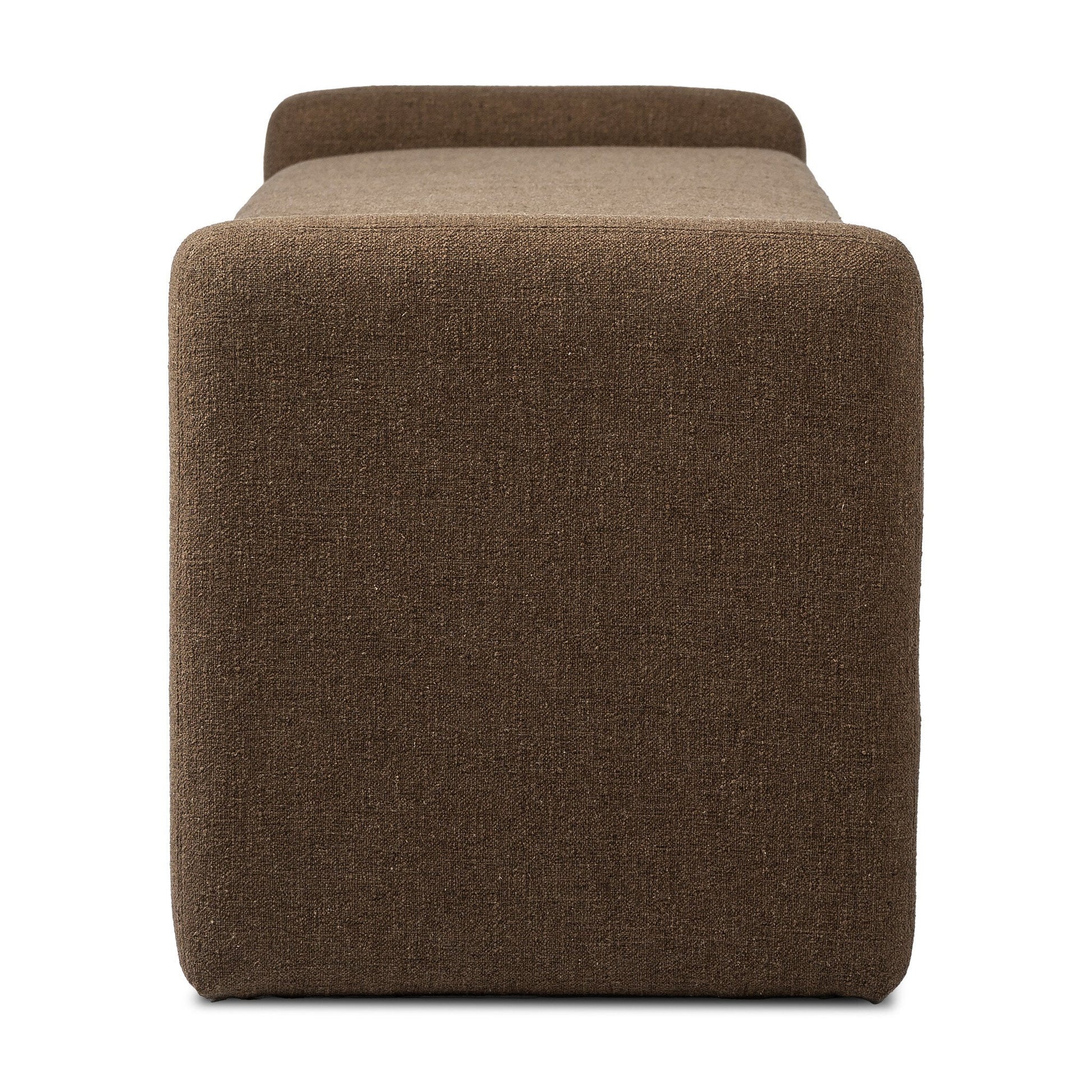 This elegant dining bench is covered in a luxurious linen-blend upholstery for a sophisticated touch.