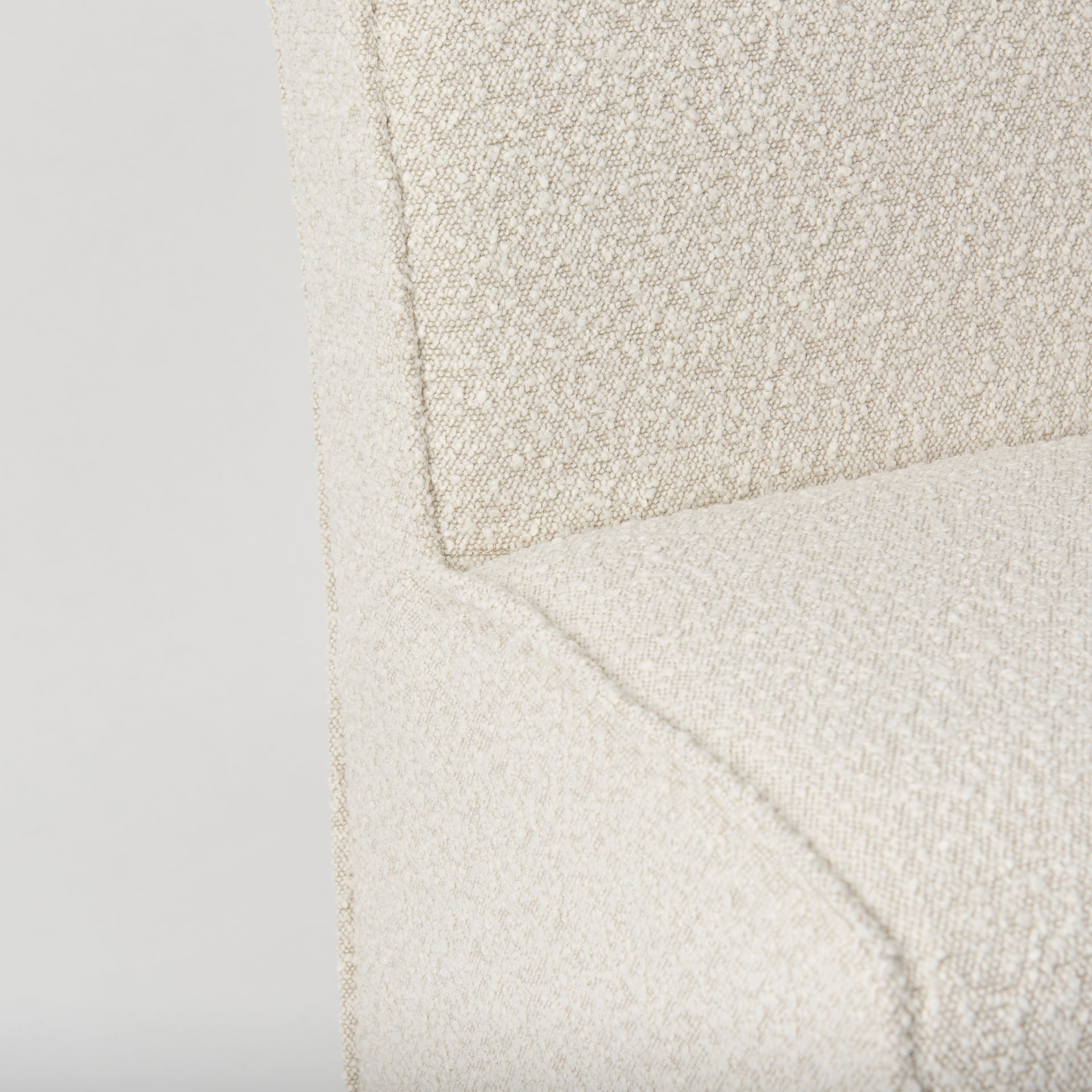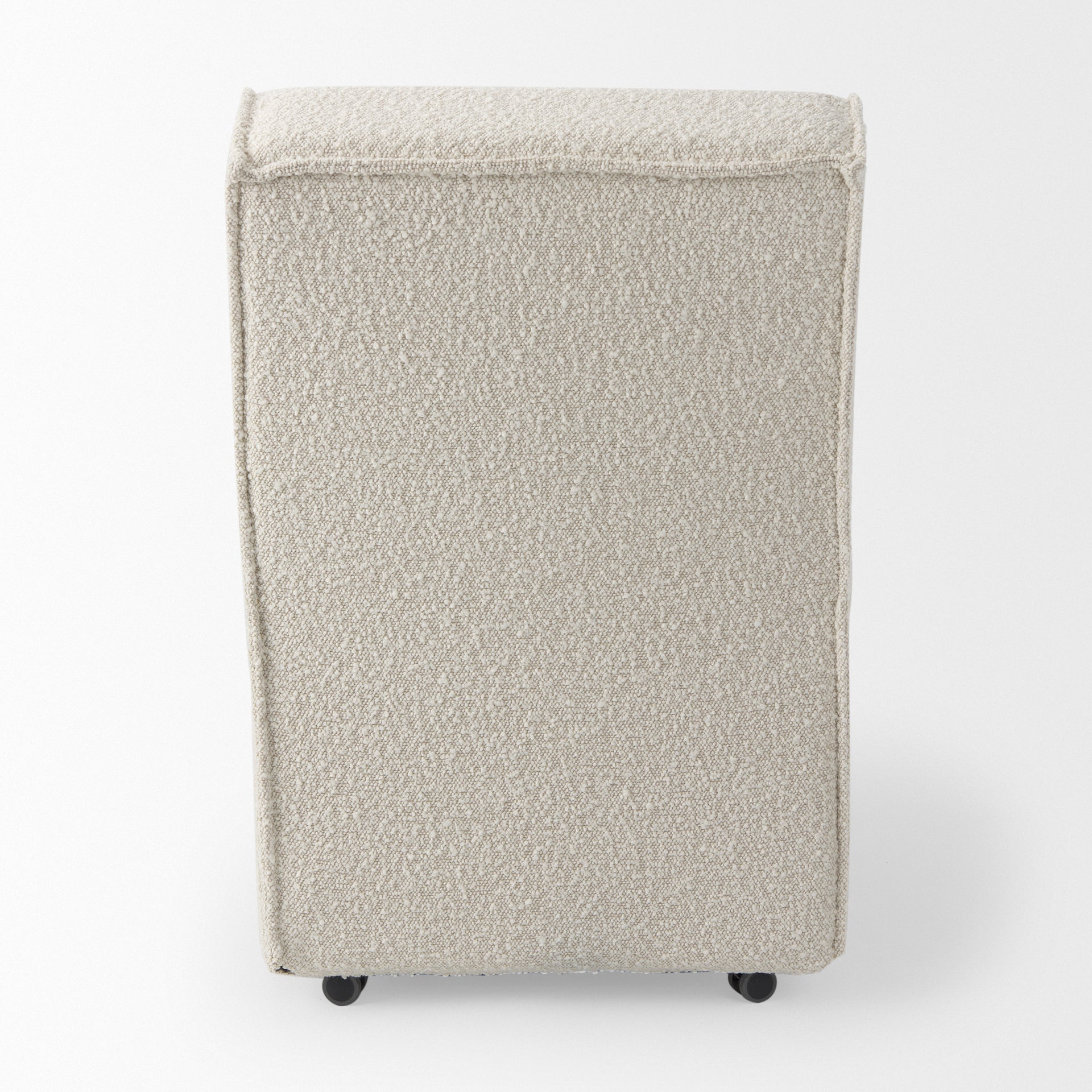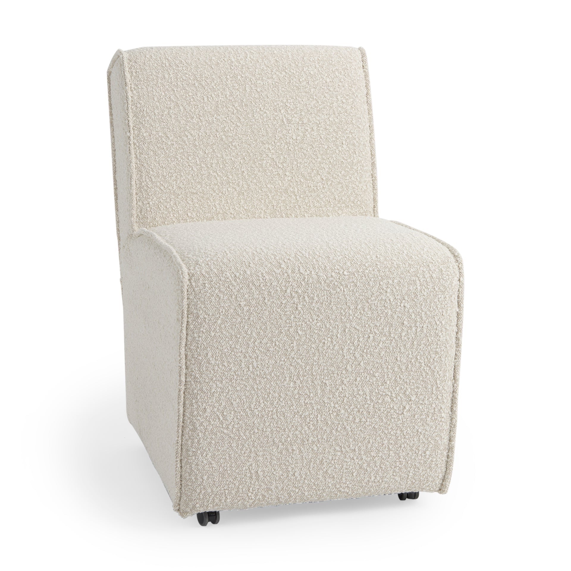 Wrapped in cream-toned fabric with thin taupe stripes, the Dillon is a ritzy dining chair set that is equipped with four locking wheels for convenient movement.