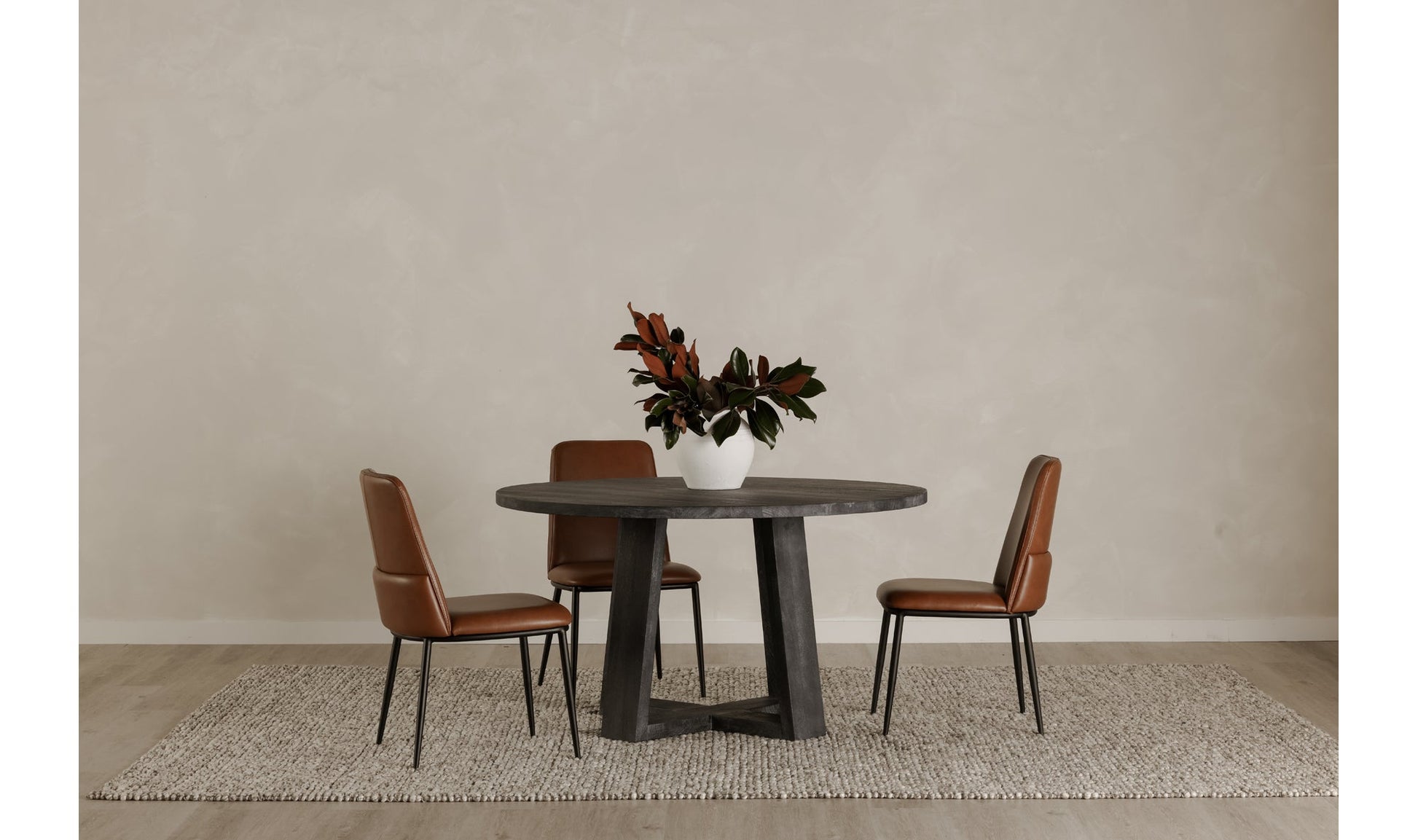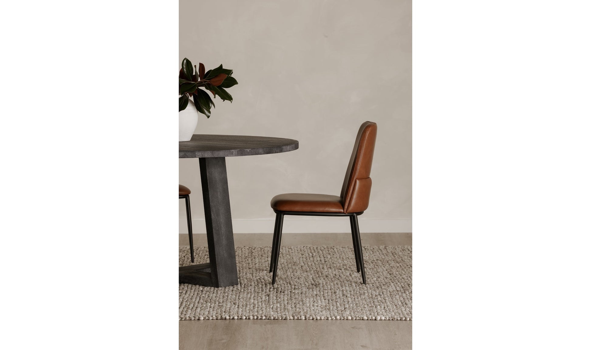 A reworked classic, Doug takes the vintage diner chair silhouette to new, modern highs. Offering up a simple, contemporary design in top-grain leather and a slender, black powder-coated metal frame, this dining chair is ready for all sorts of soirees.
