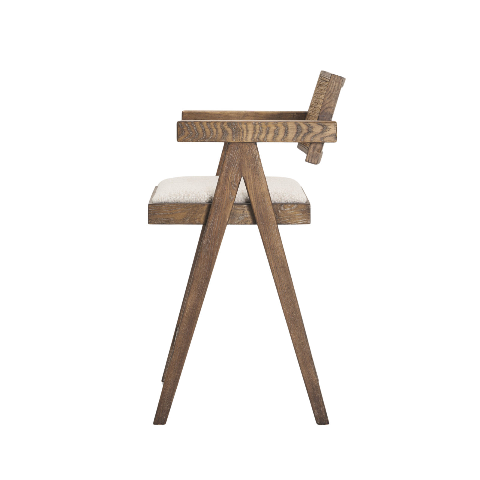 Irene is the perfect addition to any modern or contemporary home. With sharp edges and clean lines, they bring a touch of sophistication to any space, with stunning cane backing paired with high armrests that provide both comfort and style. The intricate pickling technique highlights the natural grain pattern of the ash wood, while the oatmeal fabric adds a soft and elegant touch.