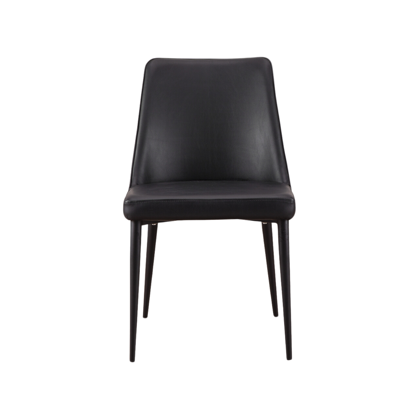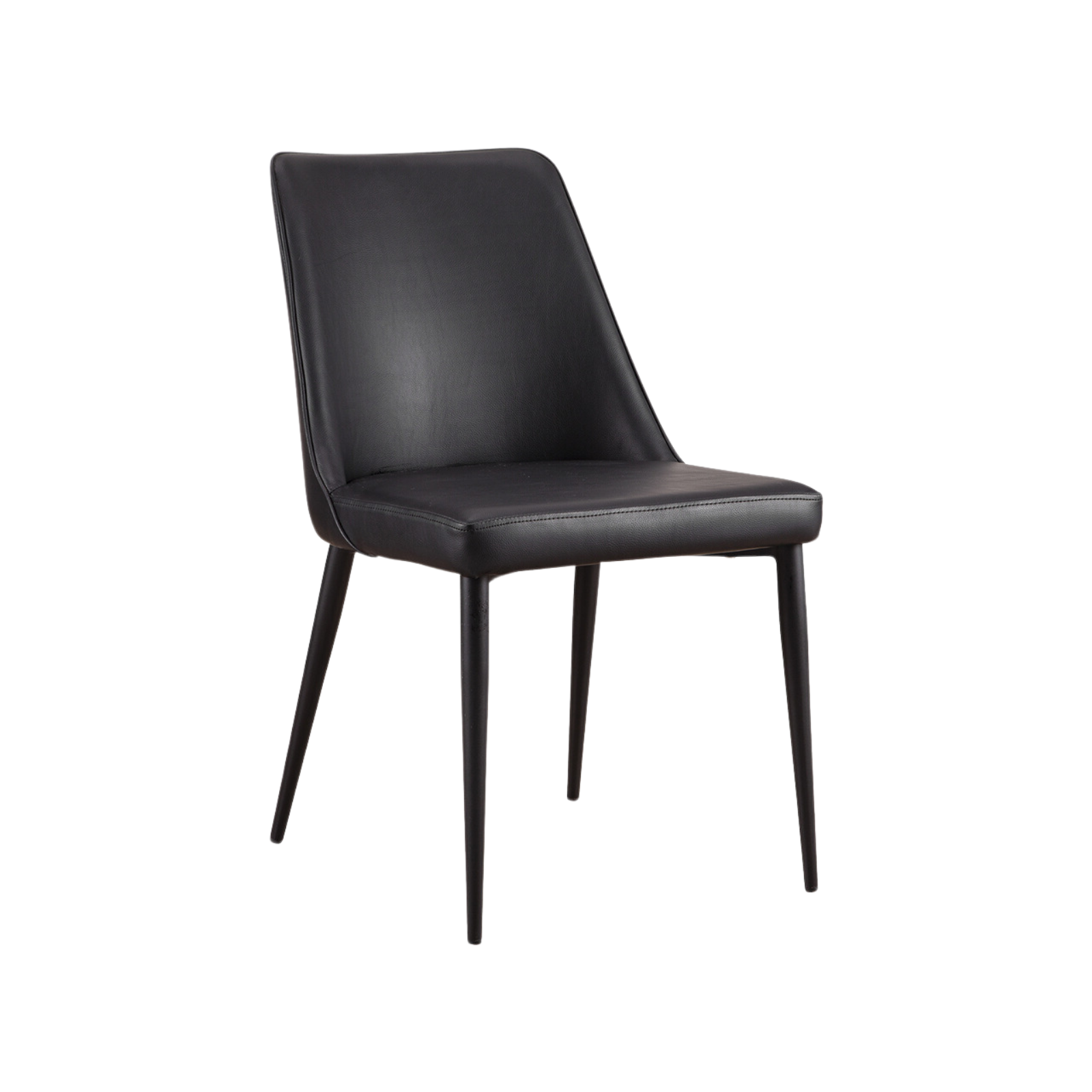 Dig into simplicity with the Lola dining chair. Sleek, easy-to-clean vegan leather upholstery offers contemporary cool, while a welcoming scooped seat provides plenty of comfort for family dinners. A sturdy iron frame with slim, tapered legs provides the final touches to this showstopping chair. An easy seat- bon appétit!