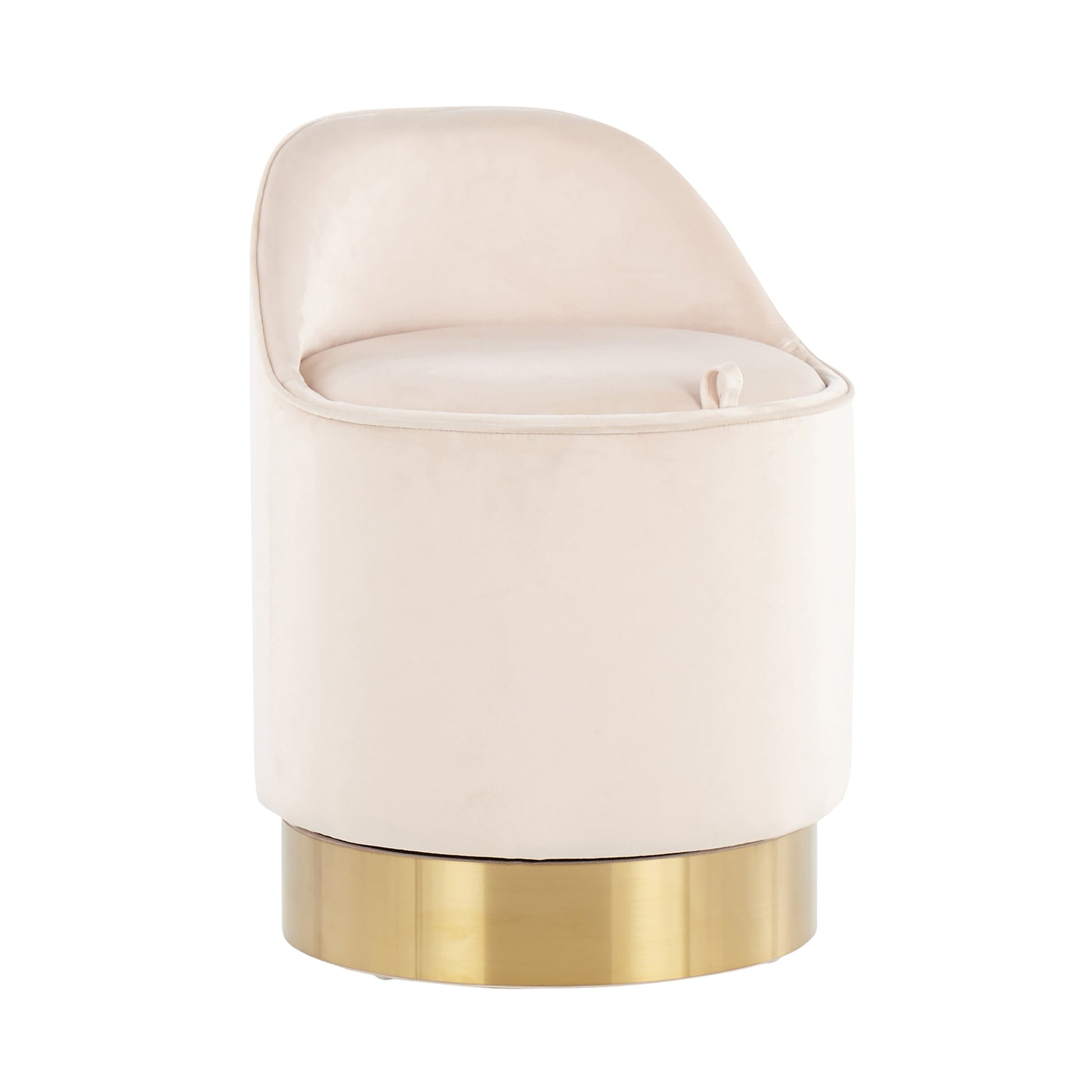 Bring a note of glamour to your home with the chic design of the Corday Swivel Vanity Stool. Featuring a low backrest, luxuriously soft cushioned velvet upholstery and a chic gold or chrome metal base. Available in a variety of colors, choose the one that fits your space the best.