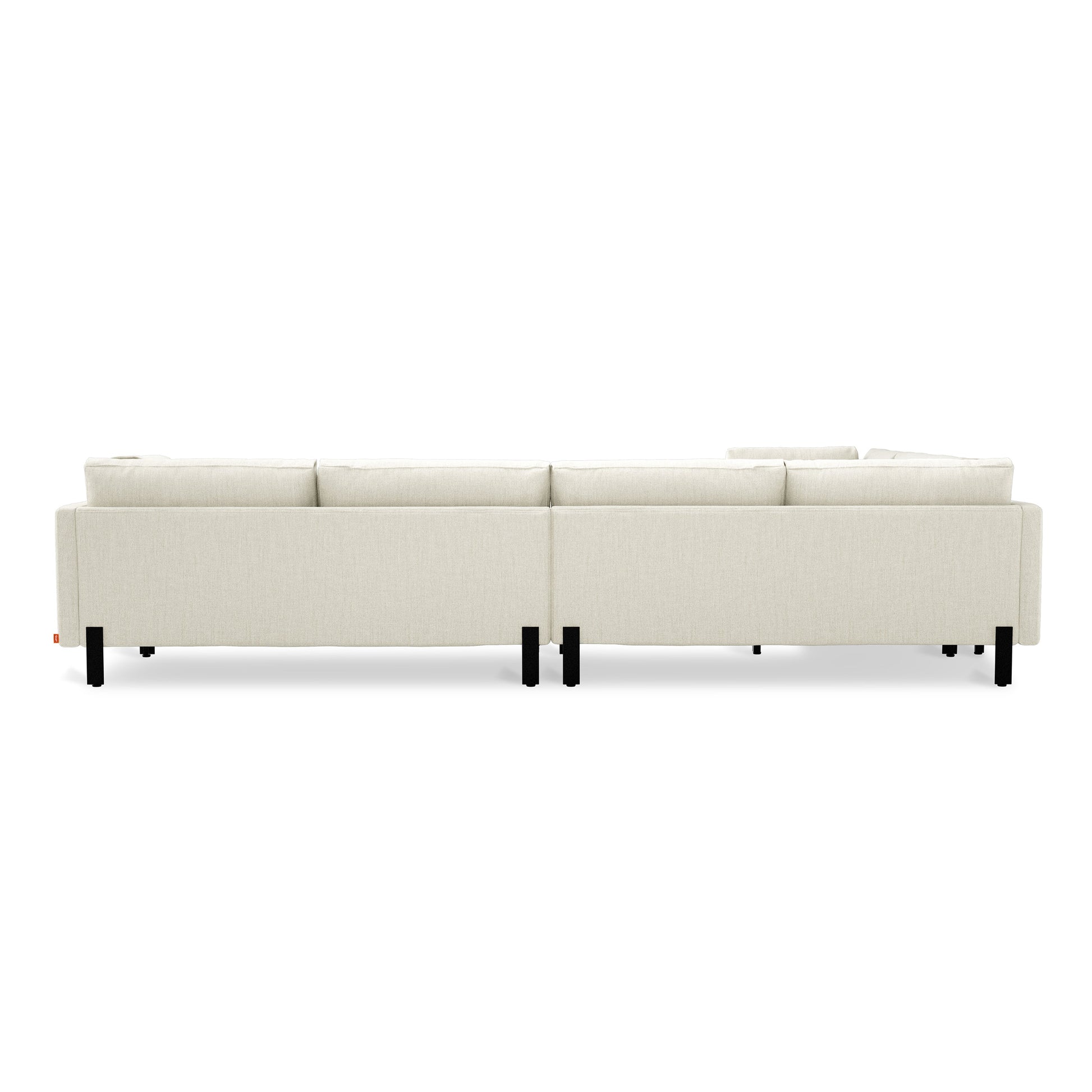 The Silverlake XL Sectional exemplifies Scandinavian-inspired design, balancing minimalist style with a relaxed, welcoming atmosphere. It features a sleek tuxedo frame paired with plush seat and back cushions filled with eco-friendly, signature PET fiber. Adjustable back and side cushions provide customizable comfort, while the deep seating enhances overall relaxation. Delicate touches like pleated fabric accents on cushion corners and architectural black powder-coated steel legs complete its modern, understated look. Crafted from kiln-dried FSC®-Certified hardwood, the sectional supports sustainable forestry, and its ultra-soft, long-strand fiber fill delivers the luxurious feel of traditional down with environmentally responsible benefits.