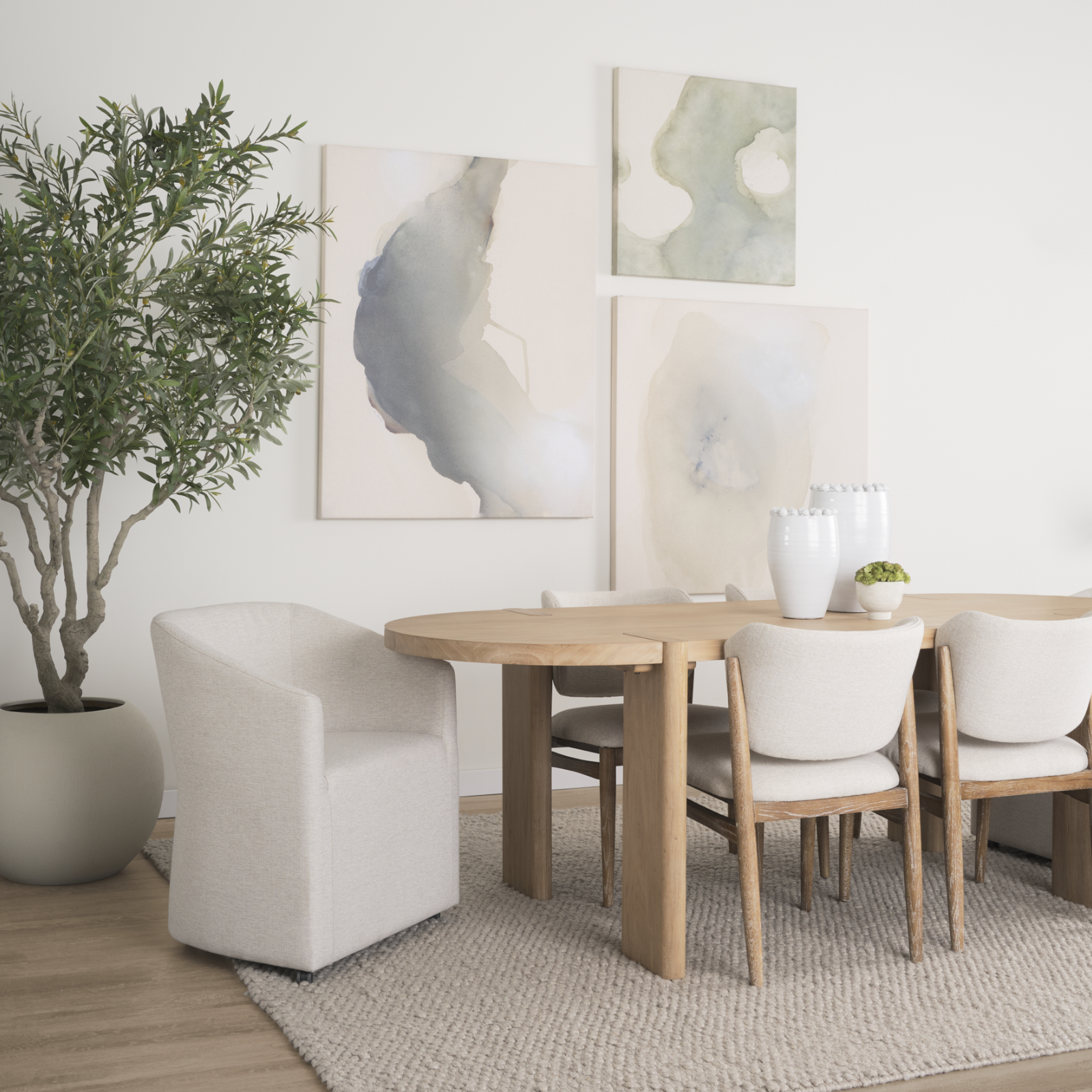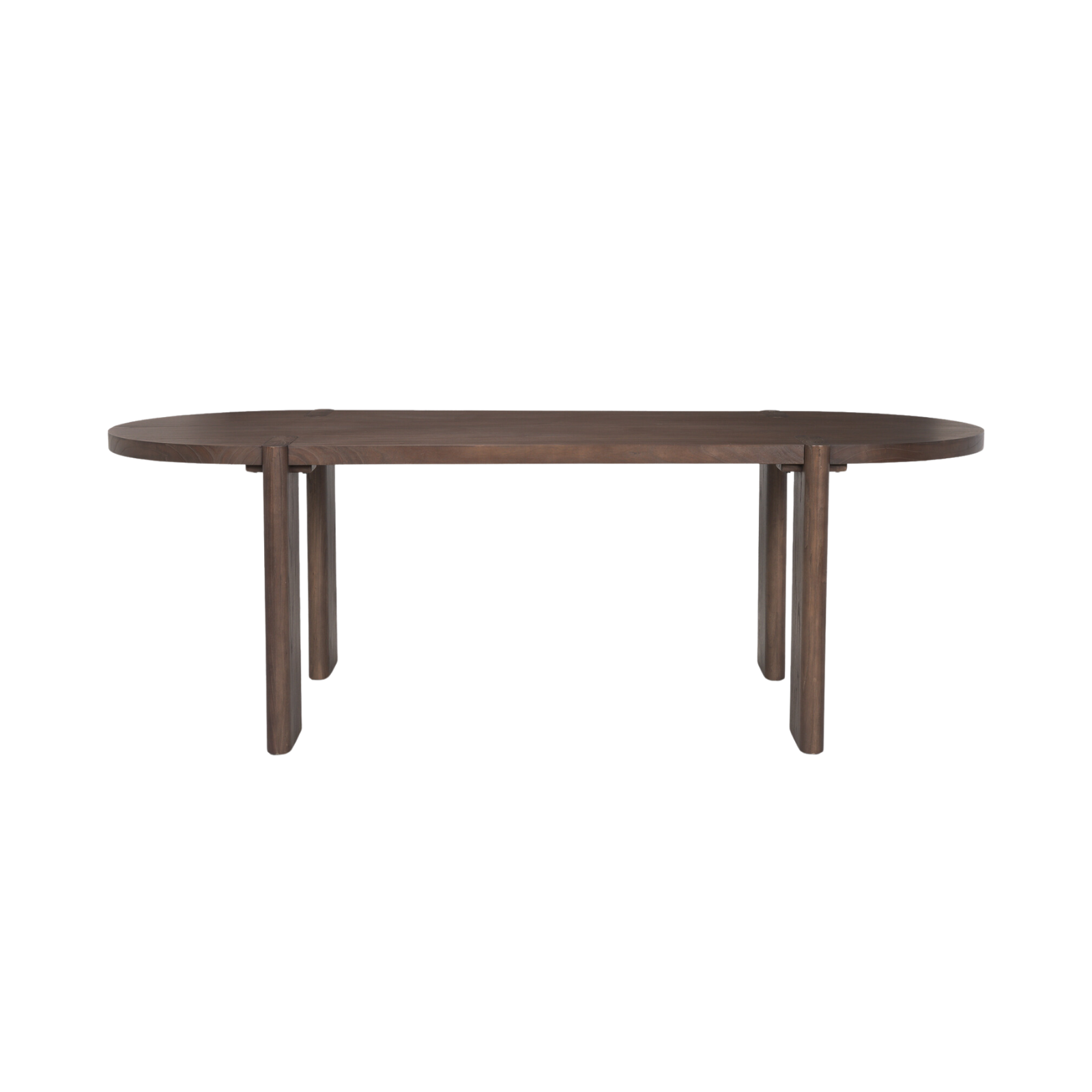 The Solange Dining Table exudes timeless elegance with its clean lines and refined oval tabletop. Crafted from engineered wood with an exquisite elm veneer, this contemporary table is both sturdy and visually appealing. Its integrated legs seamlessly blend into the design, offering a modern touch to any dining space.