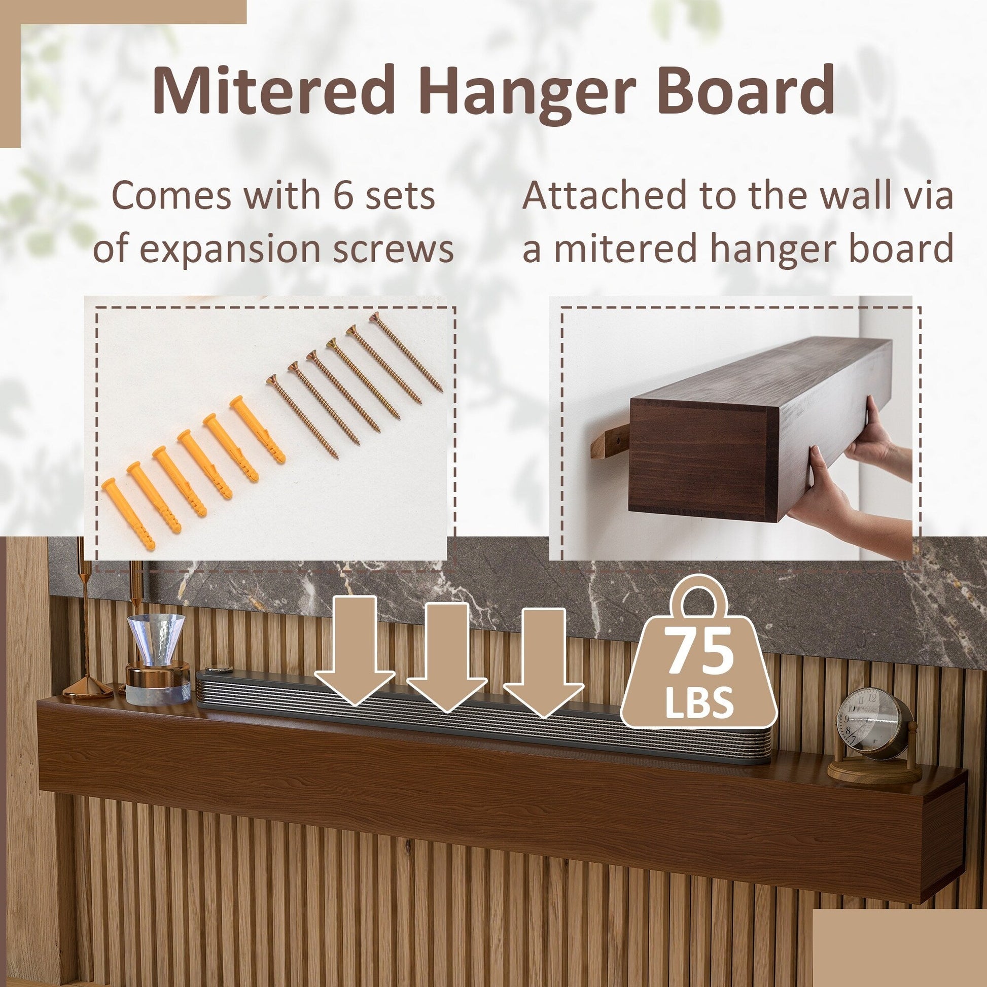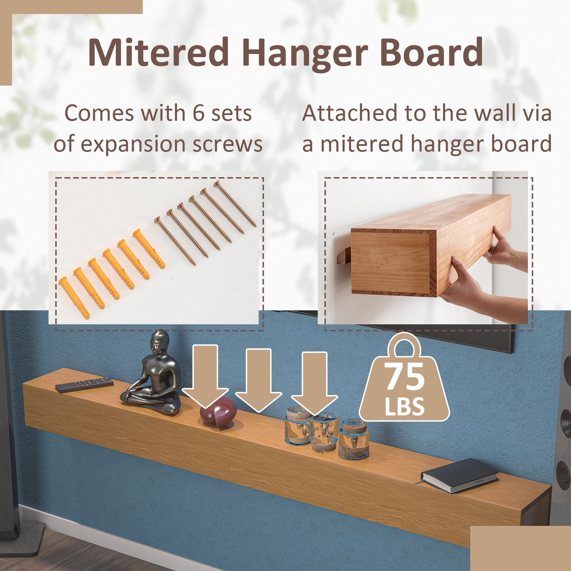 - LIGHTWEIGHT & STURDY - We use a hollow structure design to keep our fireplace mantel relatively lightweight and simple to hang; Measuring 60 x 8 x 6 inches, the floating shelf provides ample space to display your books, awards, photos and other treasures; It can support up to 75 pounds of weight