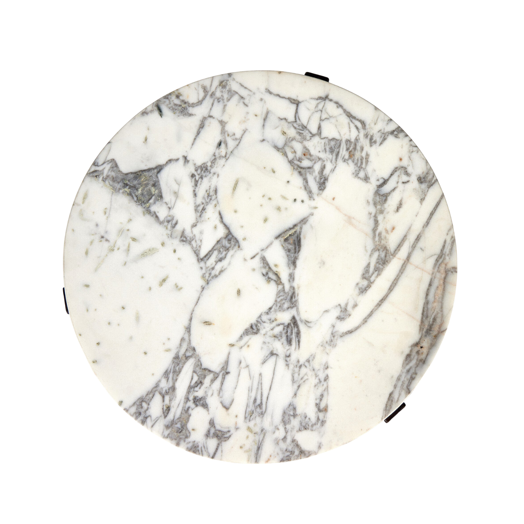 Expertly crafted, the Sylvie End Table elevates any room with its modern twist on a classic design. The striking marble top, featuring bold veining, adds a touch of movement to the smooth surface. Offering both style and substance, this end table brings contrast and sophistication to any space.