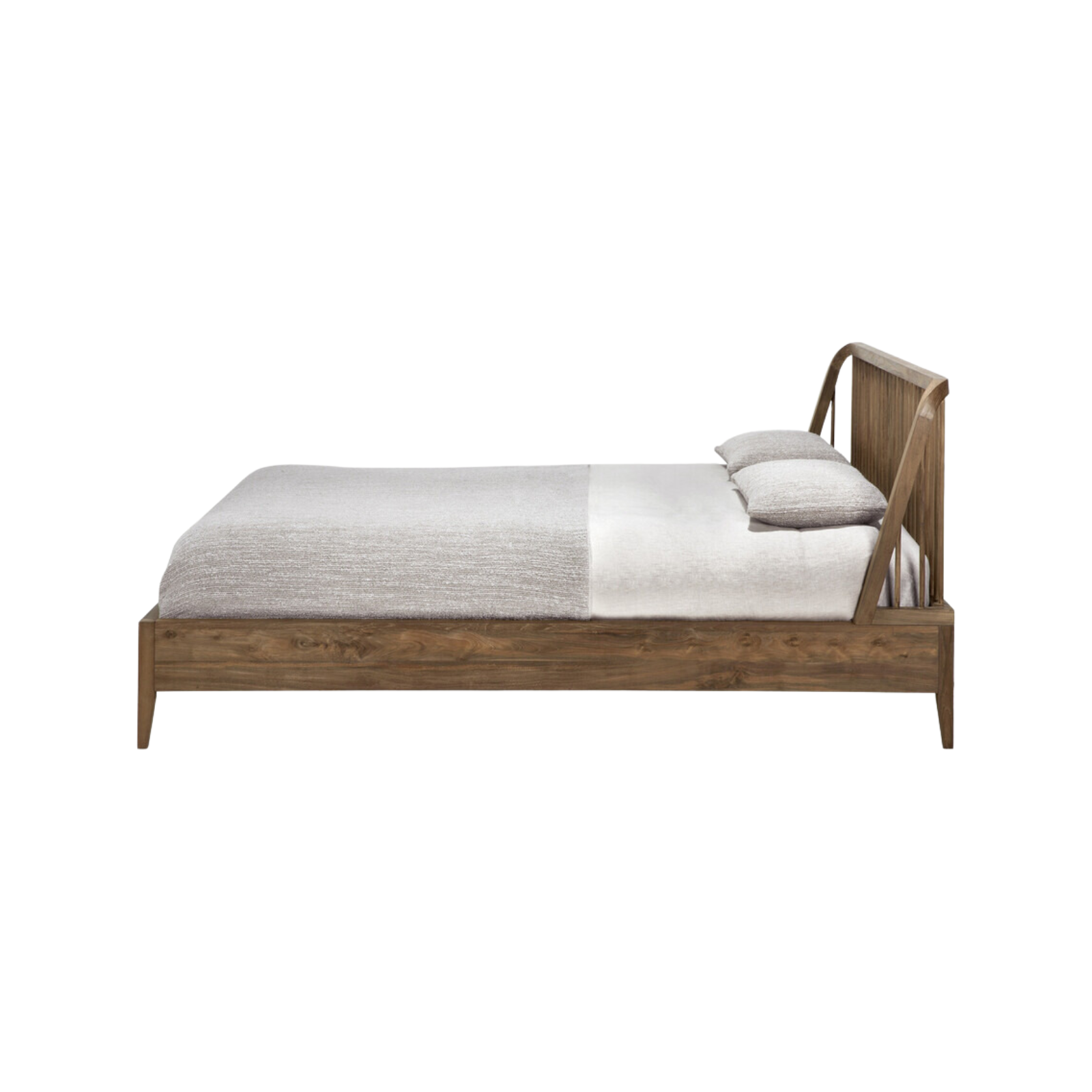 The Spindle collection found its inspiration in the traditional spinning wheel and incorporates perfectly aligned spokes into the headboard. Slightly tapered legs and rounded edges add a soft, sensual quality to this beautiful bedroom collection. Reclaimed teak offers a truly unique finish for each and every item — the origin of each hand-finished piece of furniture carries its own story in its material.