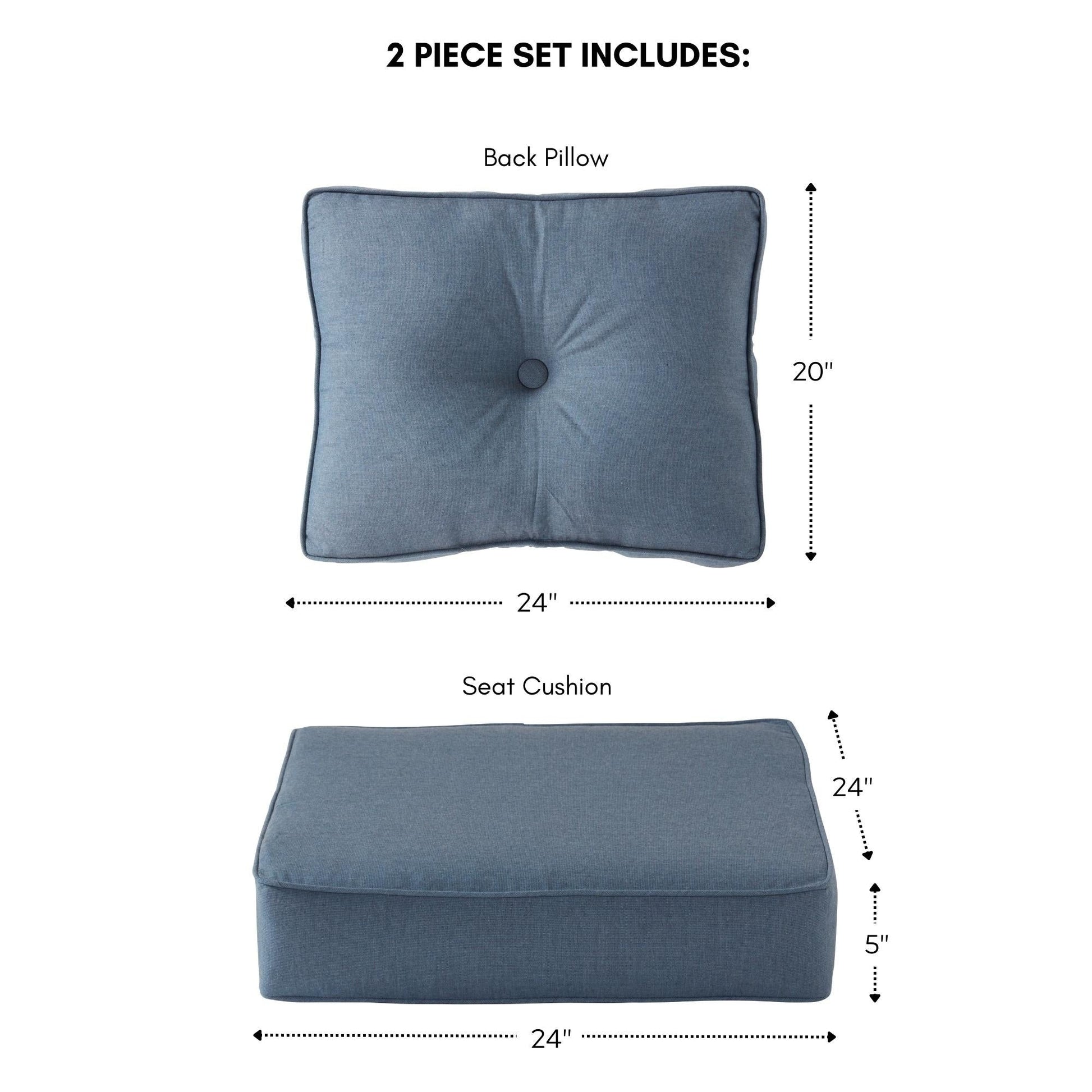 - Includes (1) Back cushion and (1) Seat cushion (Chair not included)