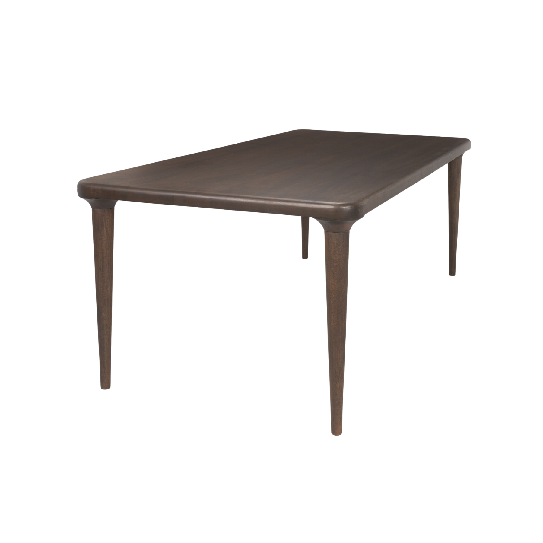 Elevate your dining experience with our Sutherland table. Crafted from solid mango wood, its rich medium-dark brown stain adds a touch of elegance. The smooth, matte finish highlights the rounded edges, while the tapered spindle legs provide sturdy support. Enjoy meals in style and comfort.