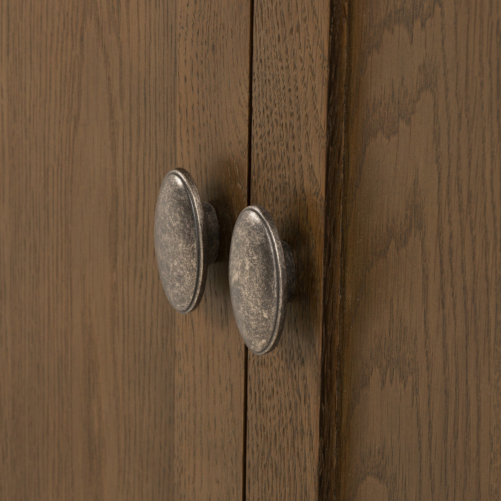 Framed panels, rounded corners and tapered spindle legs speak to the vintage European design behind this spacious sideboard. Made from solid oak and oak veneer, with rear cutouts for cord management.