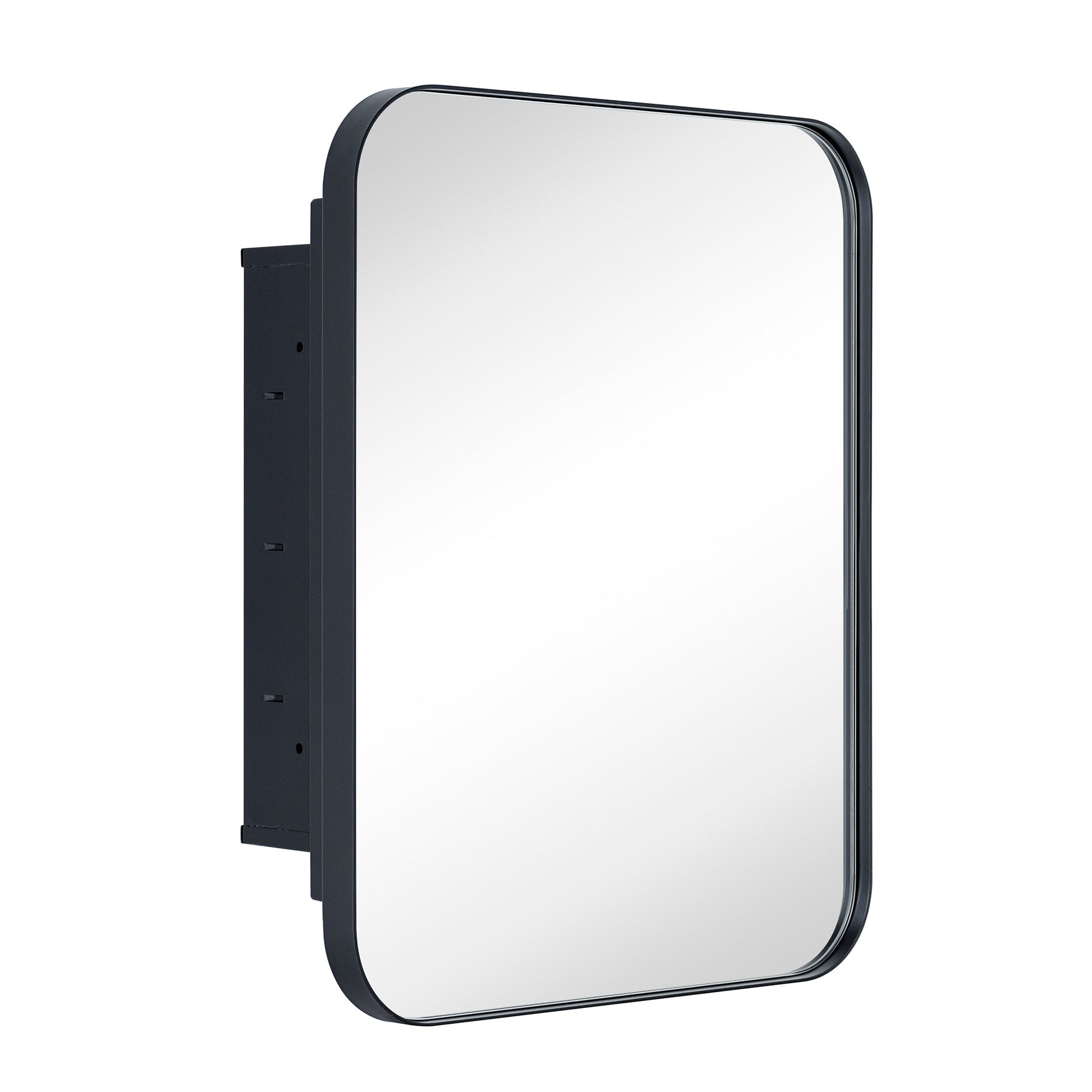 This stainless steel framed medicine cabinet is designed with a recessed mounted wall. Modern and contemporary styled to complement a variety of bathroom decor, this bathroom mirror with cabinet provides lots of space-enchanting reflections with a rounded rectangle of mirrored glass.