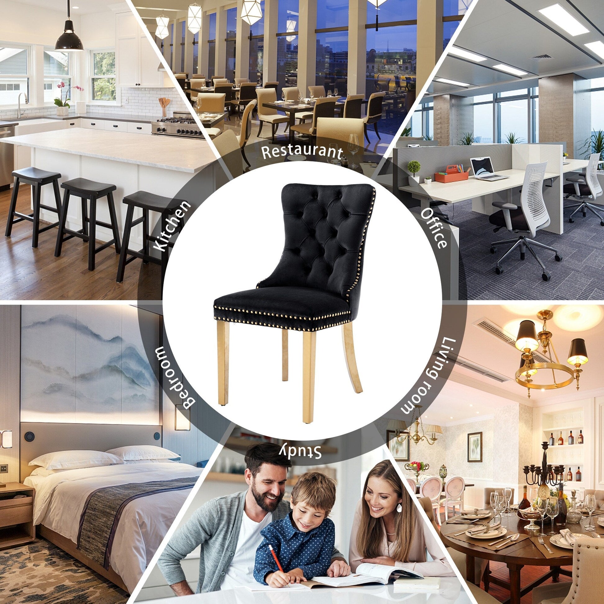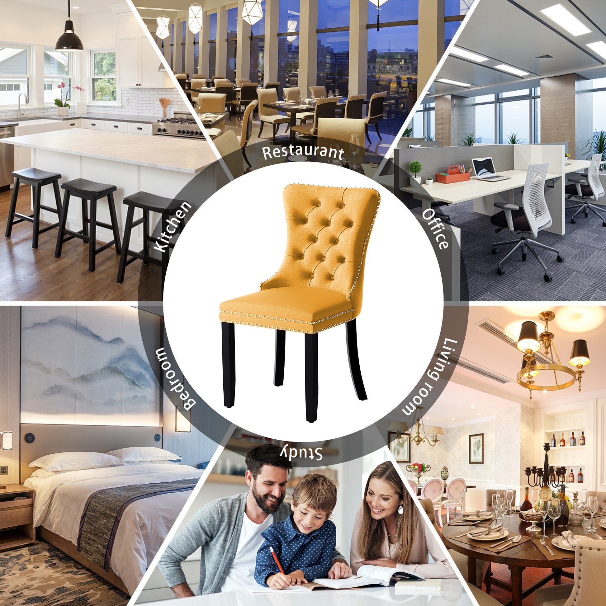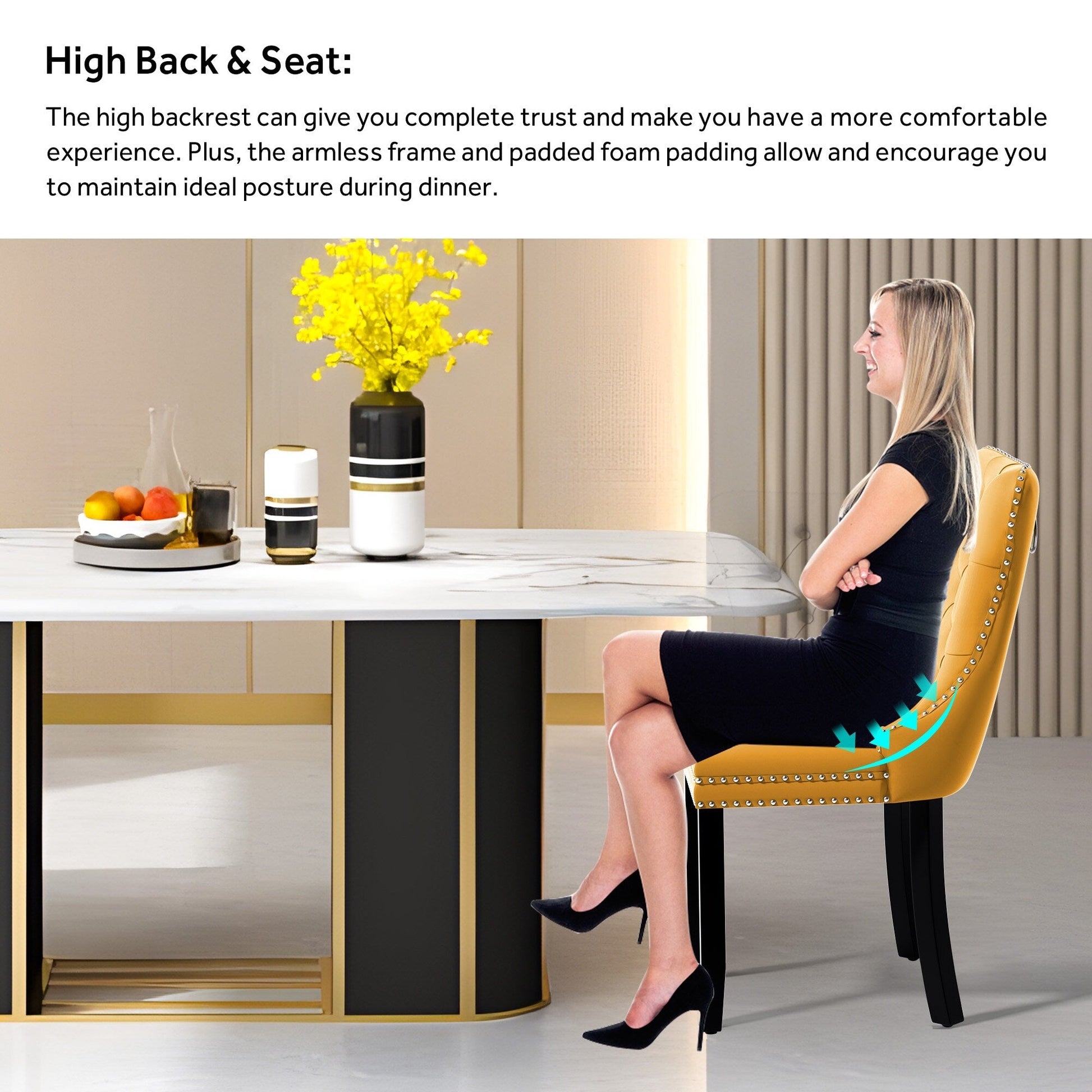 Upholstered Tufted Velvet Dining Chair with Solid Wood Legs Set of 6