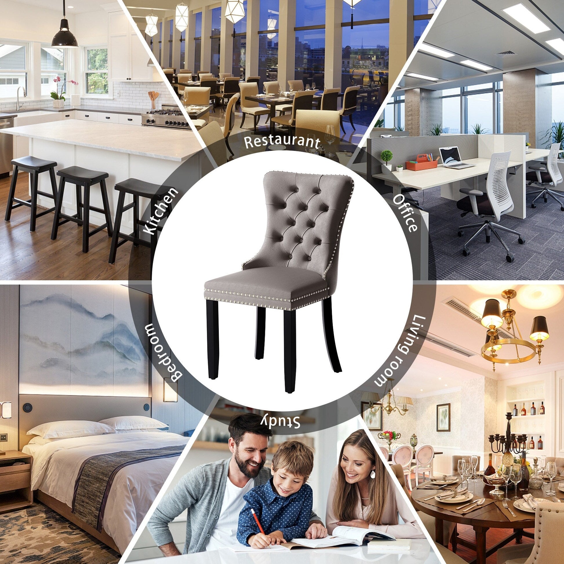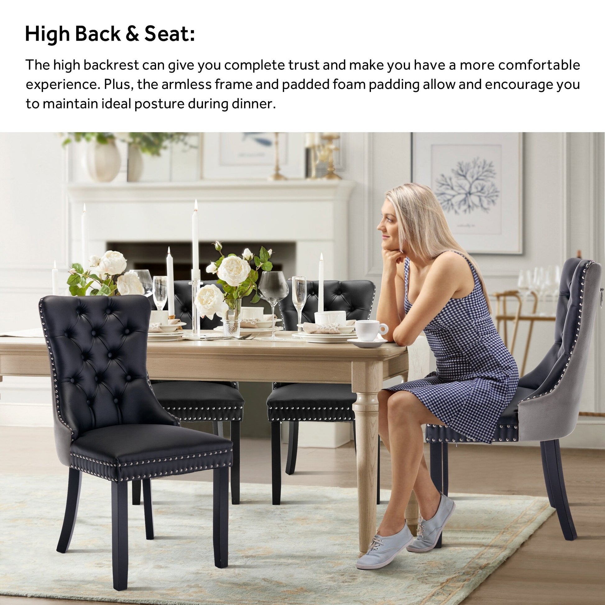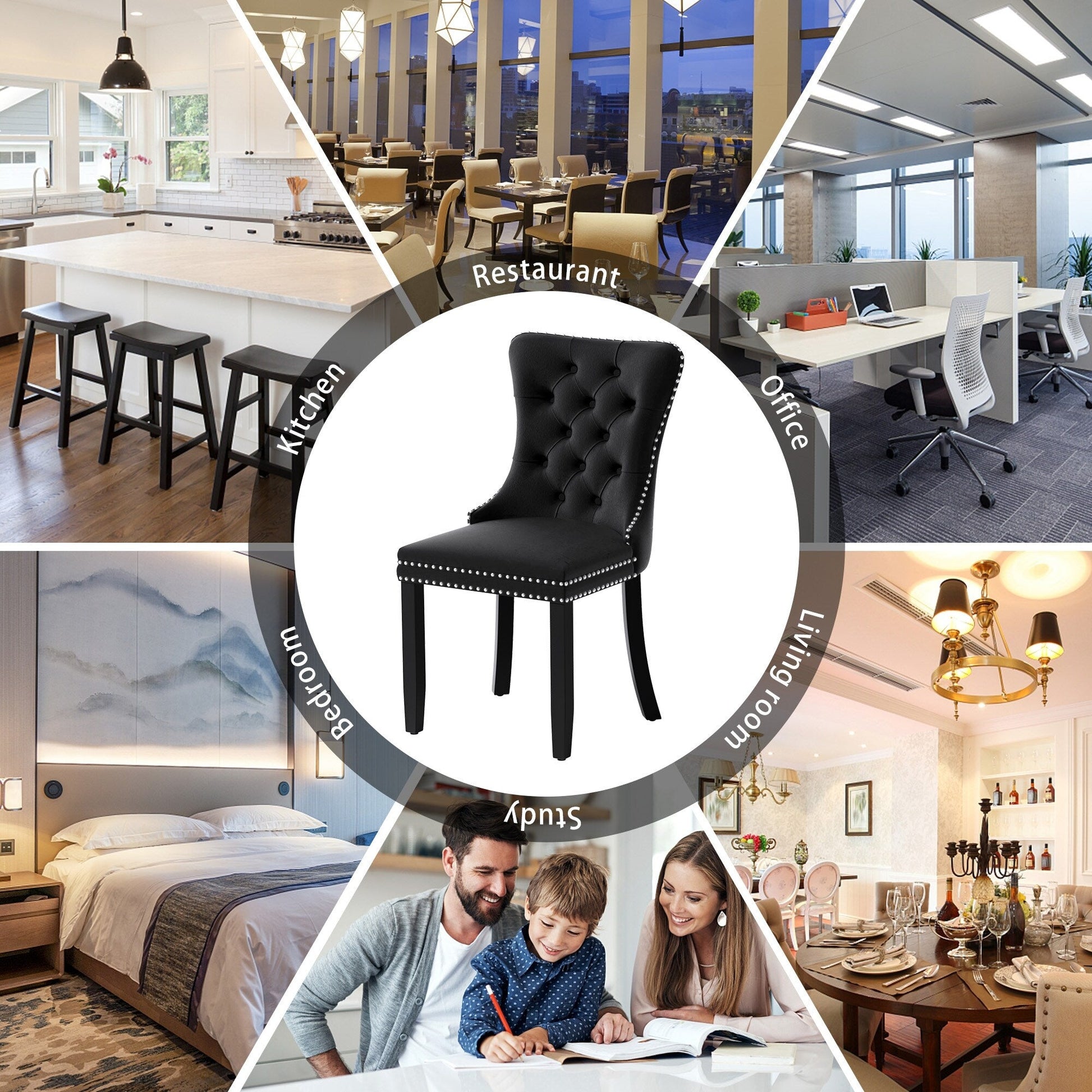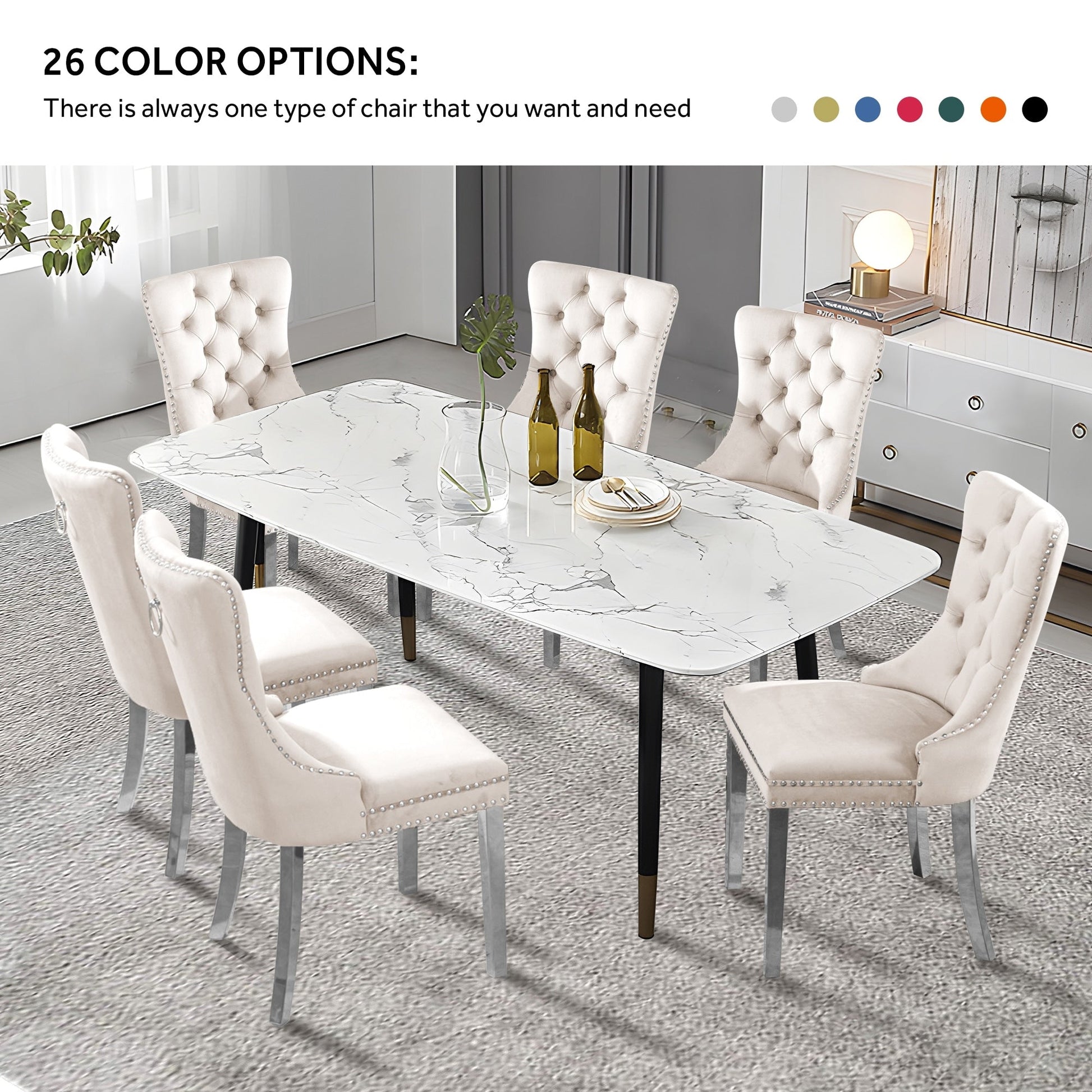 Upholstered Tufted Velvet Dining Chair with Solid Wood Legs Set of 6