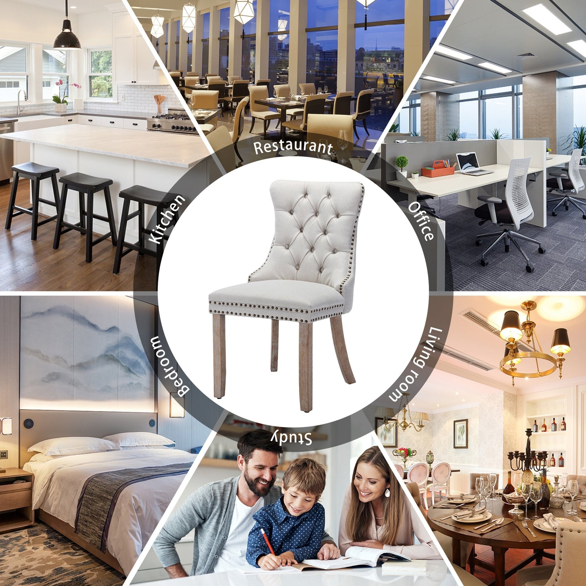 • Sturdy Upholstered Dining Chairs: The chair's frame and legs are made of solid wood with enough security to hold up to 300 pounds.