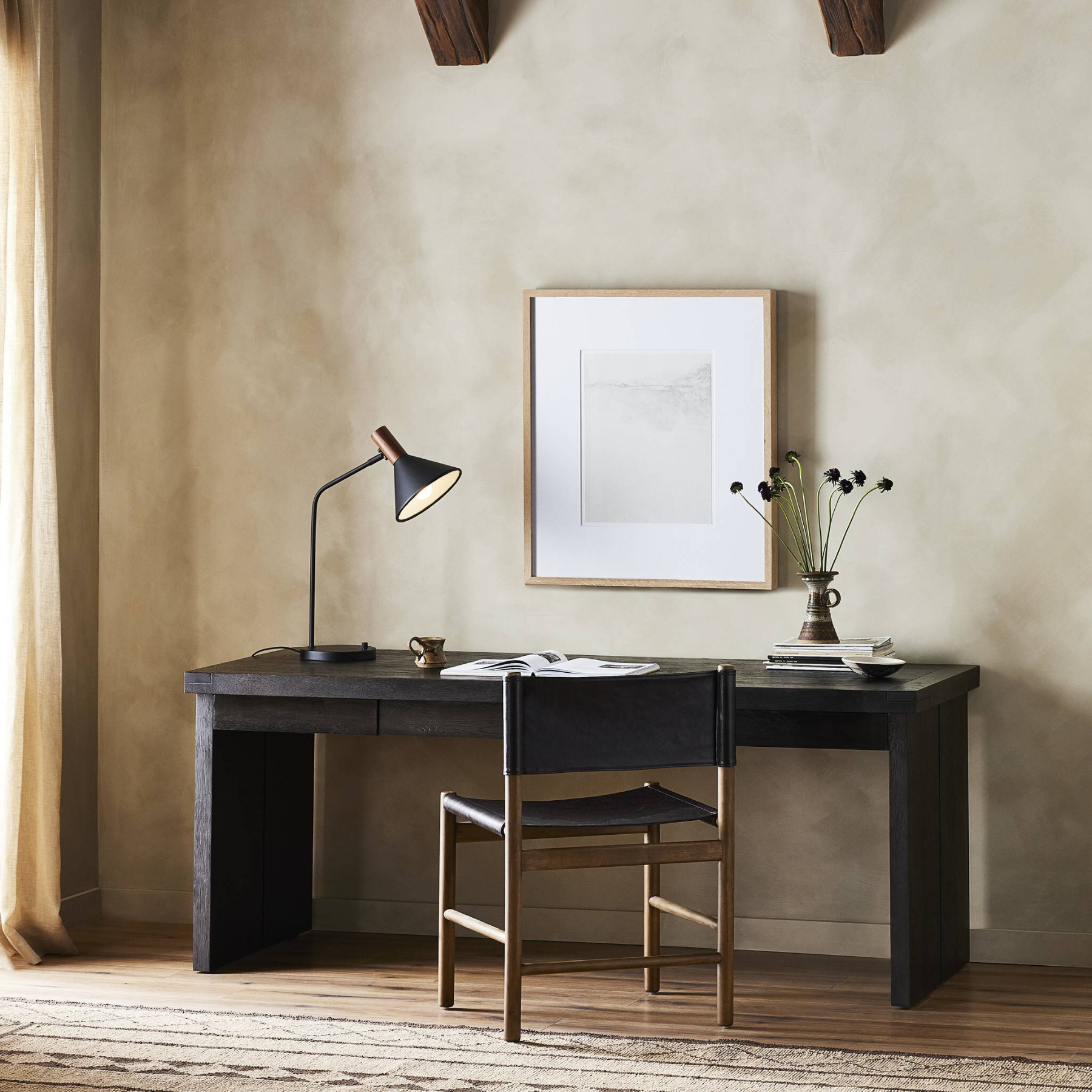 Elevate your workspace with the Wexley Desk. Boasting a naturally minimalist design, this streamlined desk features four drawers for convenient storage. Upgrade your productivity and style with this elegant desk.