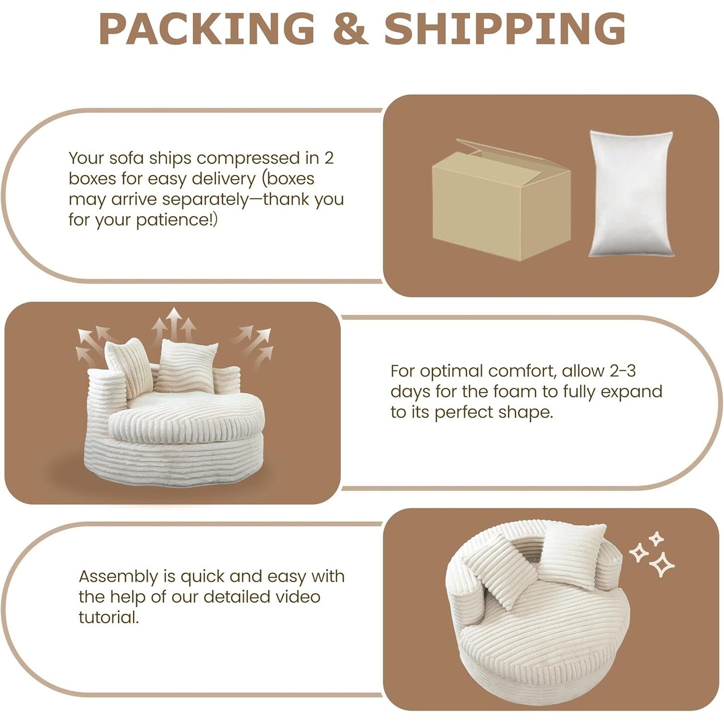 WOWMAX 47 Round Chaise Lounge Chair Indoor, Upholstered Corduroy Floor Sofa Oversized Sleeper Chair with 2 Throw Pillows