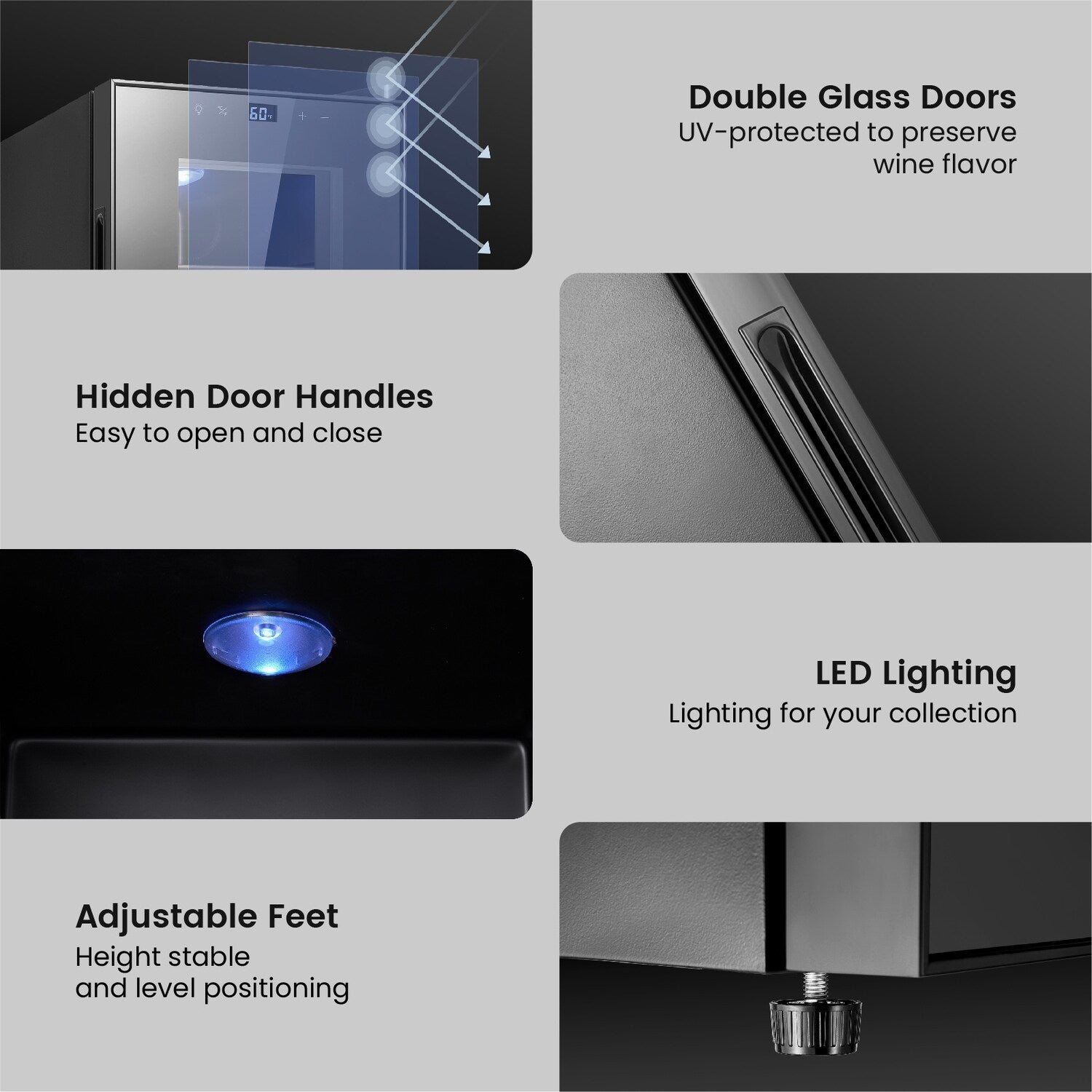 • Silent Operation: Operates with minimal vibration and noise levels, providing a tranquil environment for your wines to age gracefully.